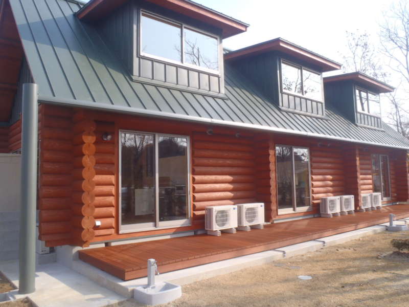 公園内の宿泊施設であり、 コテージ木造2階建 (丸太組工法)152.5m2 |